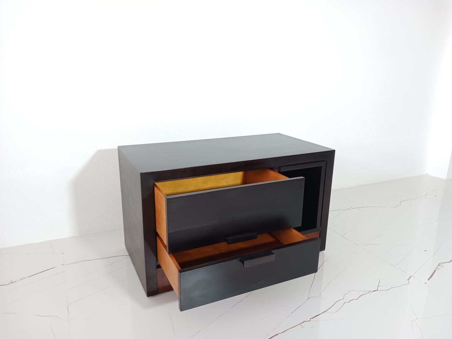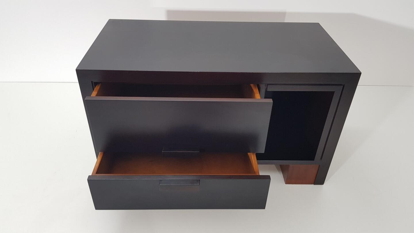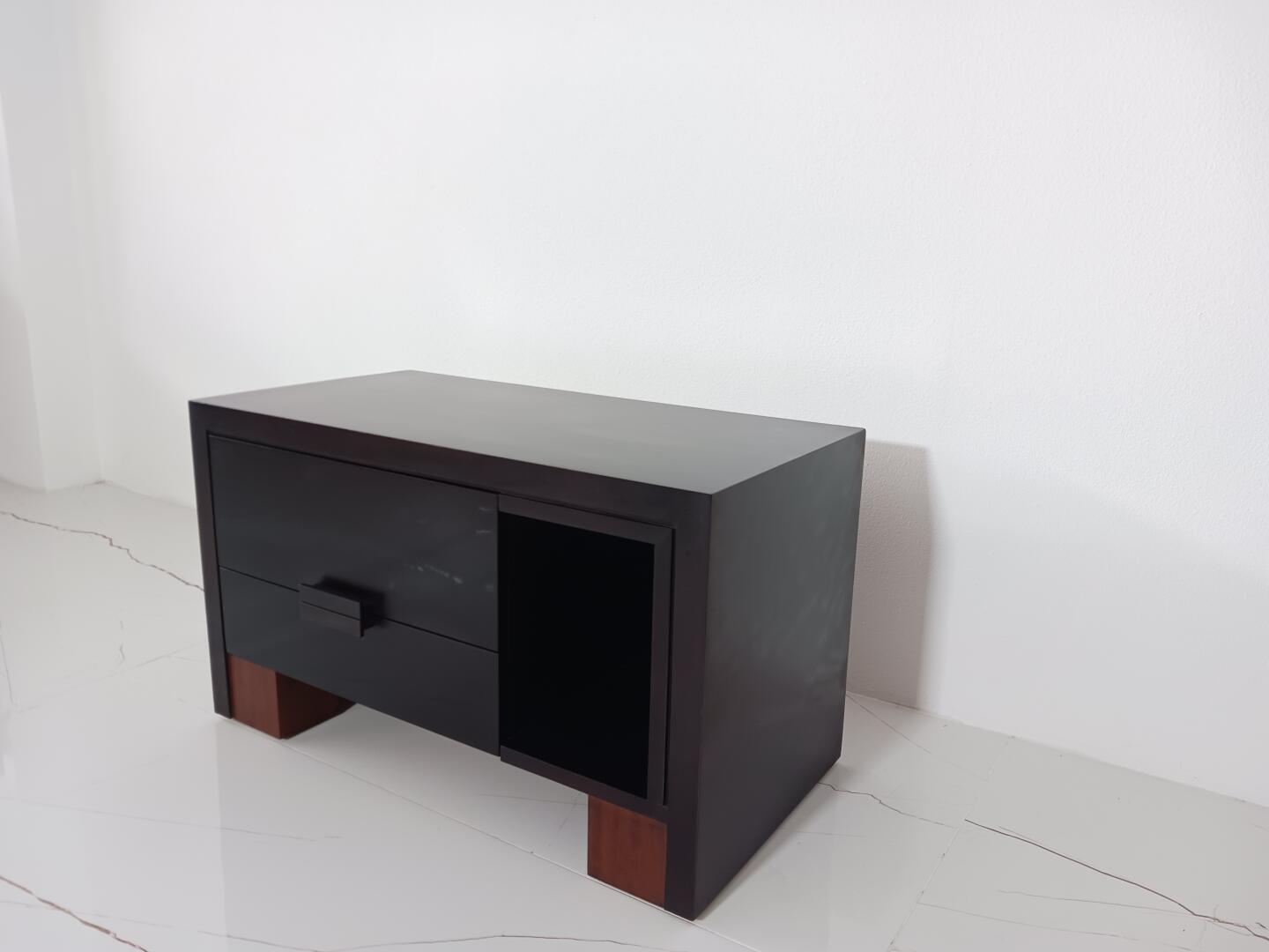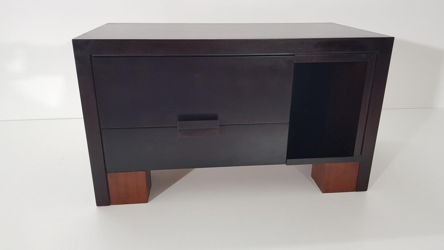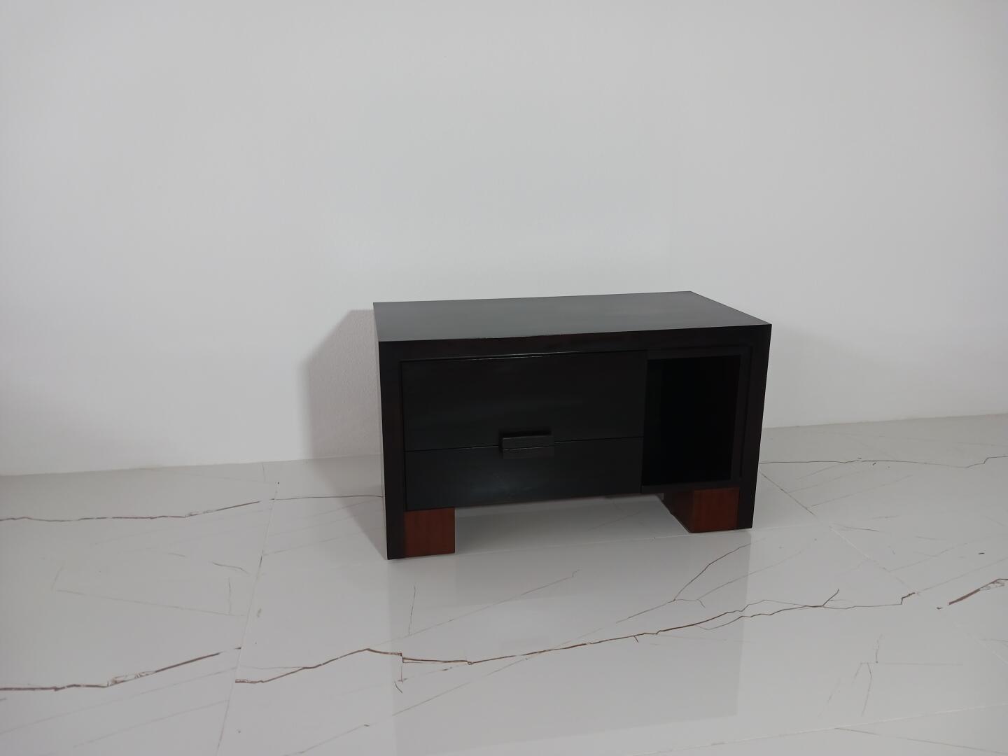 Móvel TV – em Wenguê e pés em cerejeira, composto por 2 gavetas e espaço arrumação
