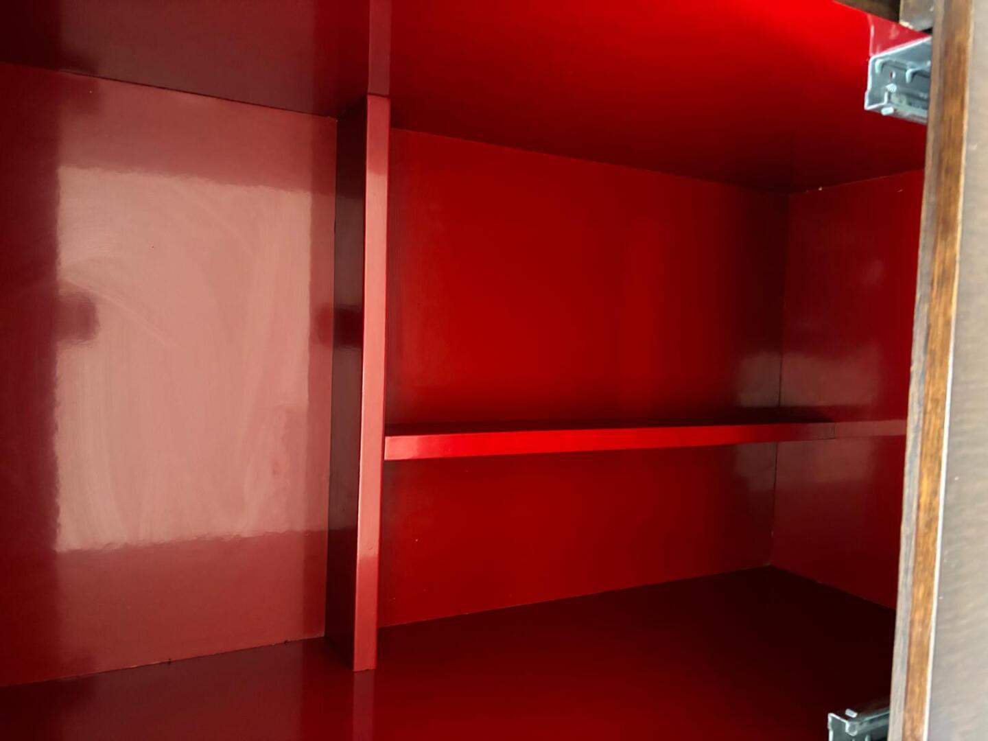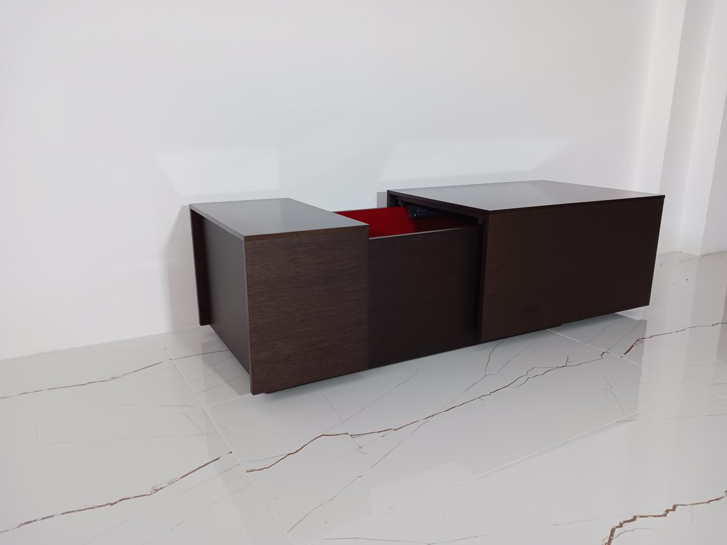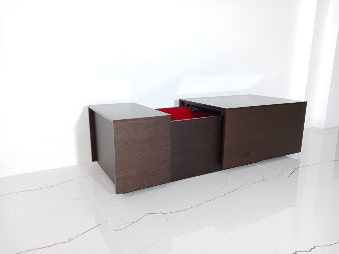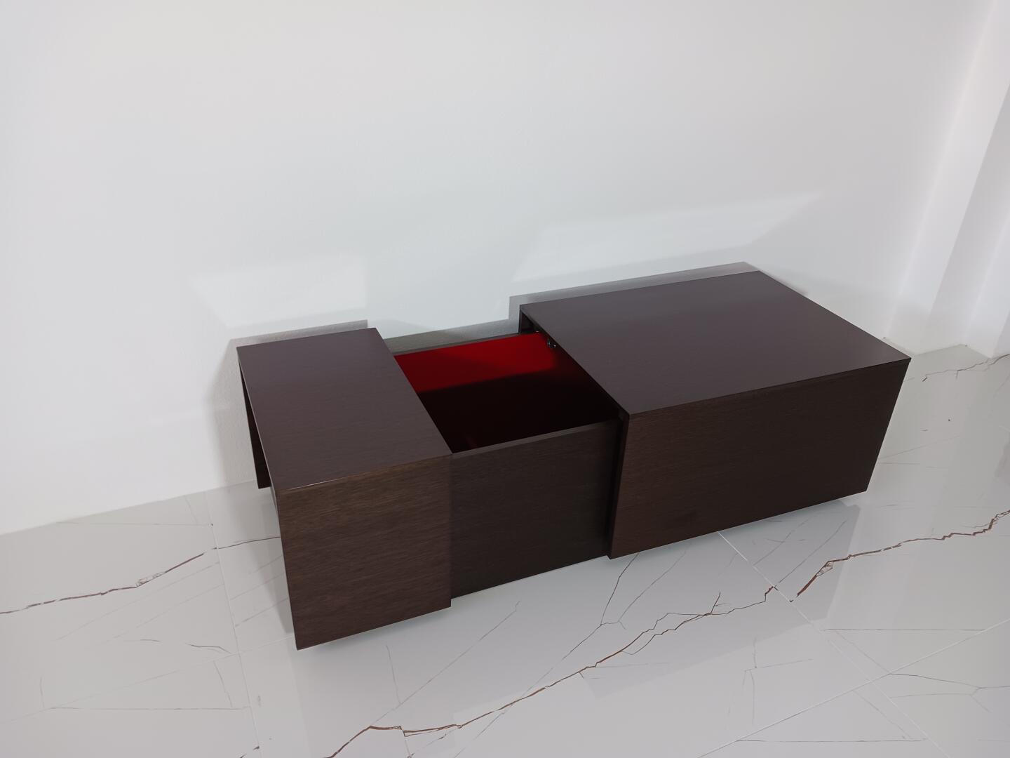 Mesa de Centro Wenguê com Bar, interior em vermelho