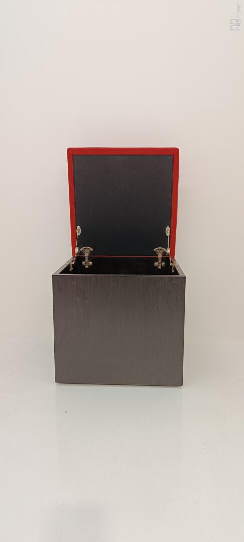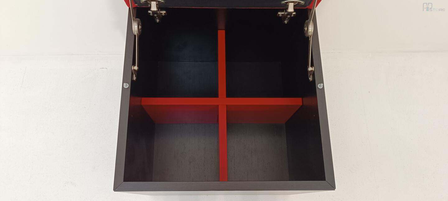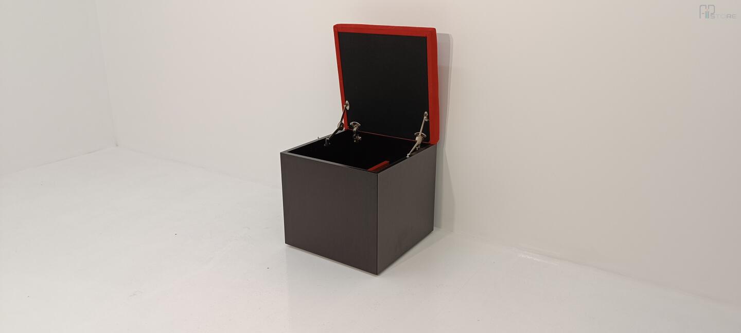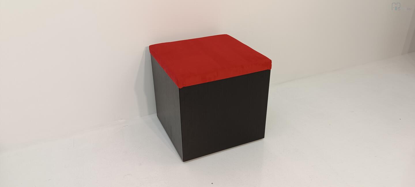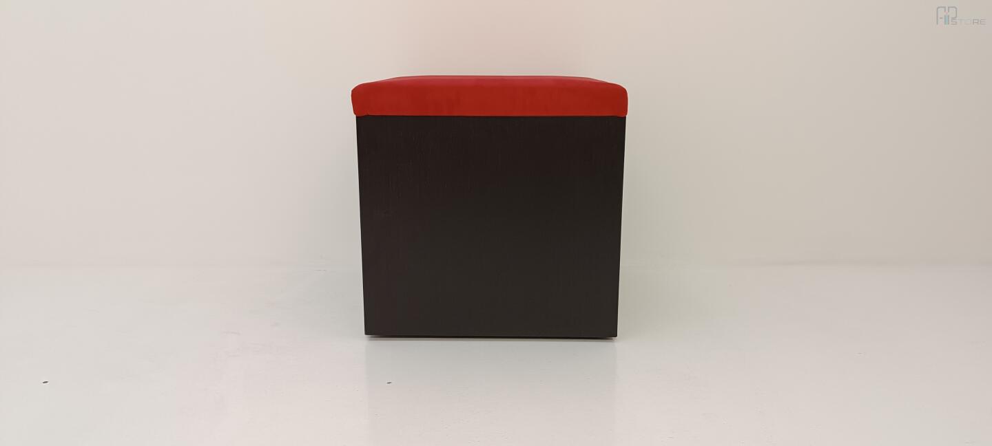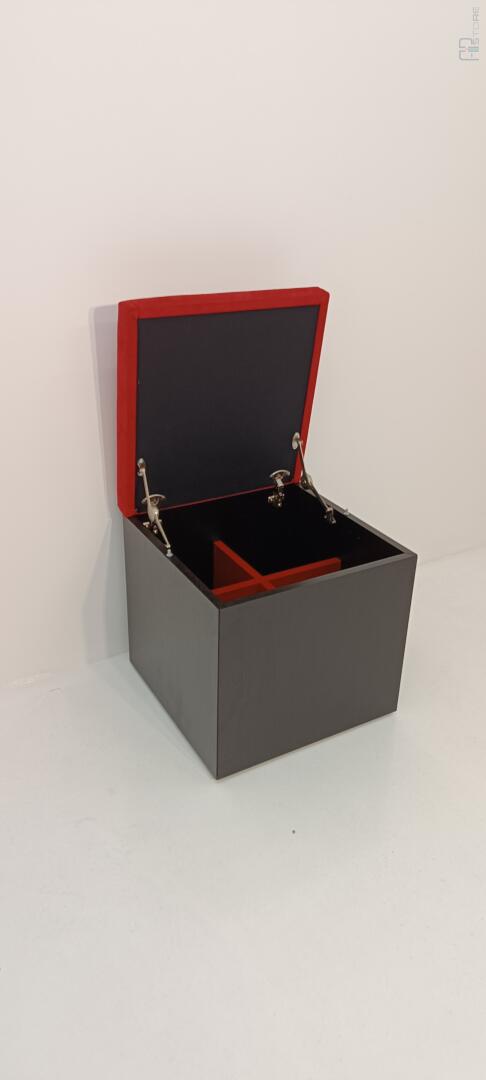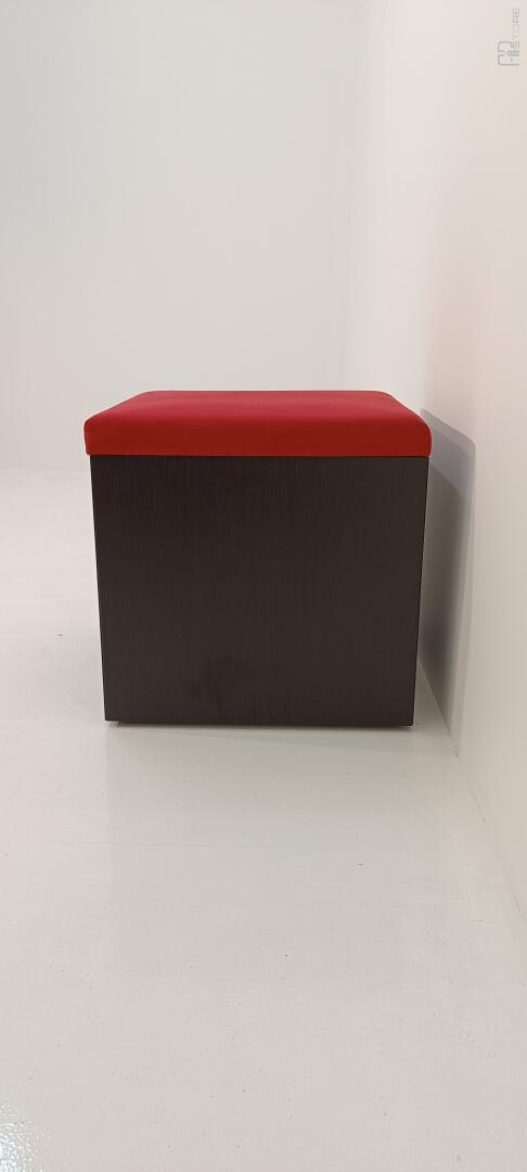 Móvel Caixa de Arrumação em wengê escuro com tampo forrado em tecido Vermelho