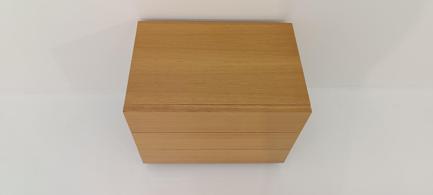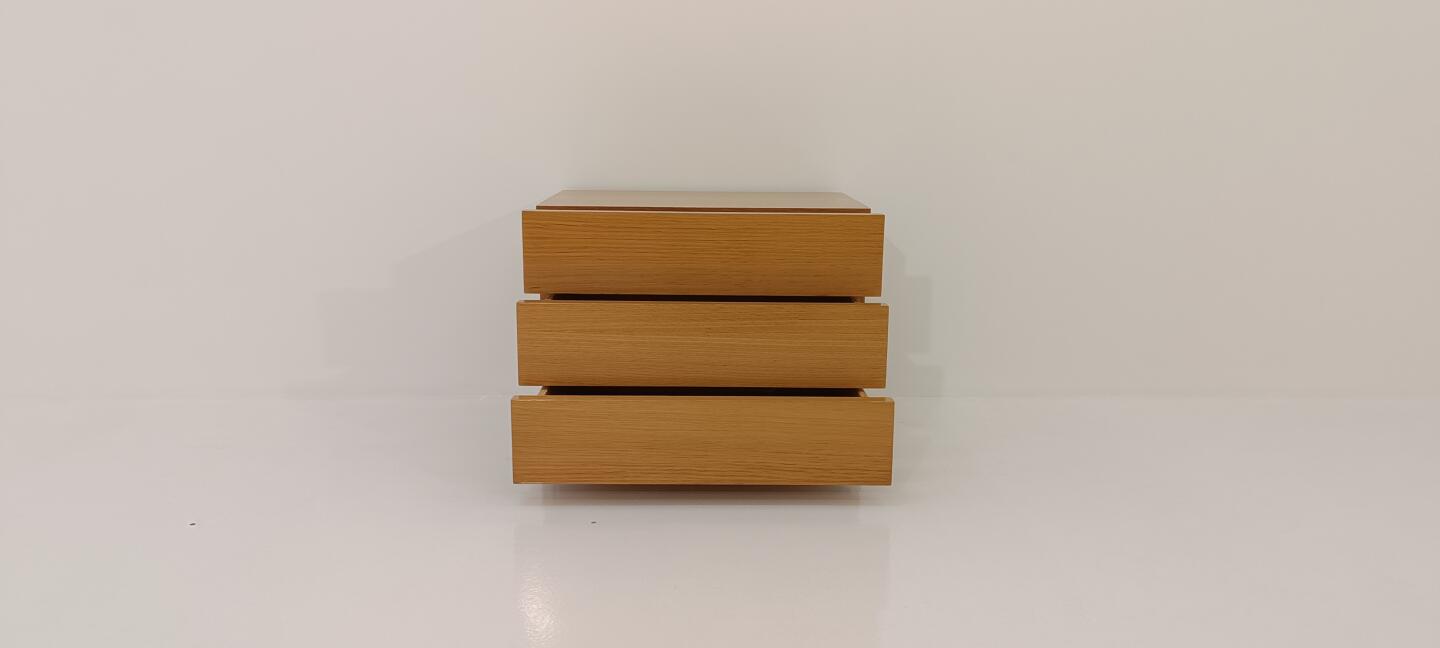Mesa de Cabeceira em carvalho velho com apontamento em efisélia, com 3 gavetas
