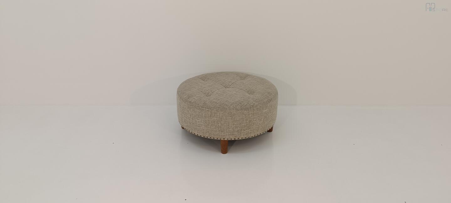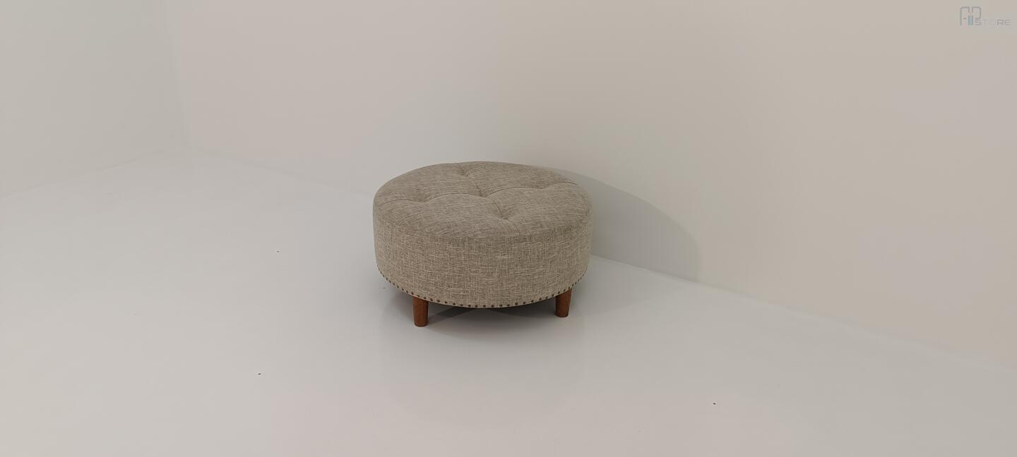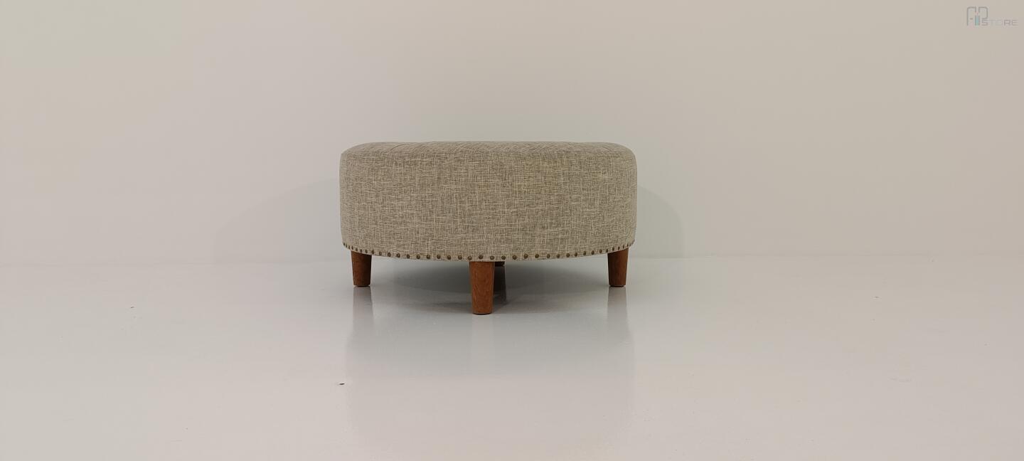 Banqueta Redonda Em Tecido Cor Bege
