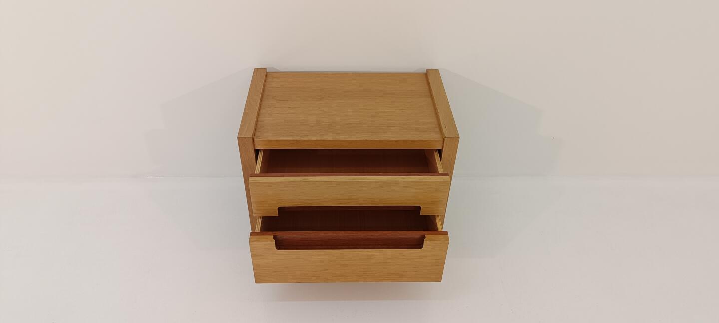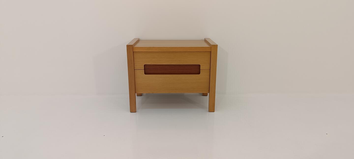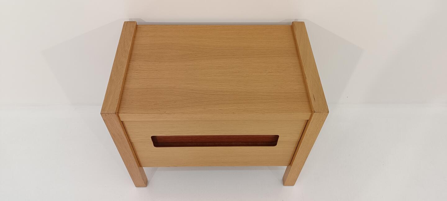 Mesa de Cabeceira em carvalho velho com apontamento em efisélia com 2 Gavetas