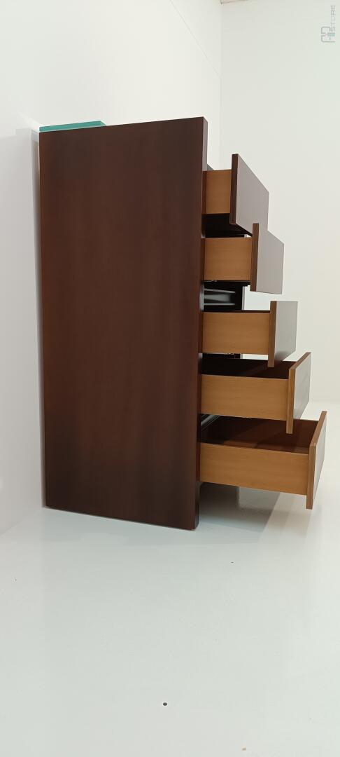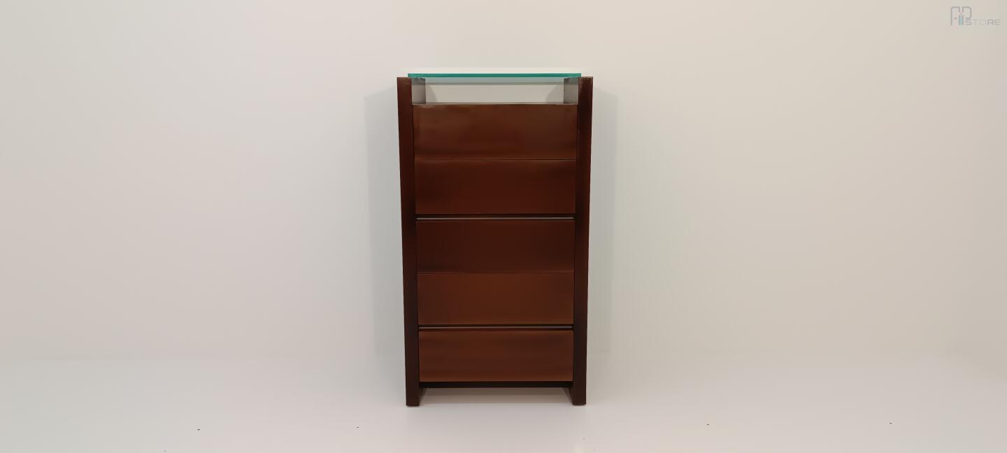 Móvel camiseiro em carvalho com 5 gavetas e uma prateleira em vidro